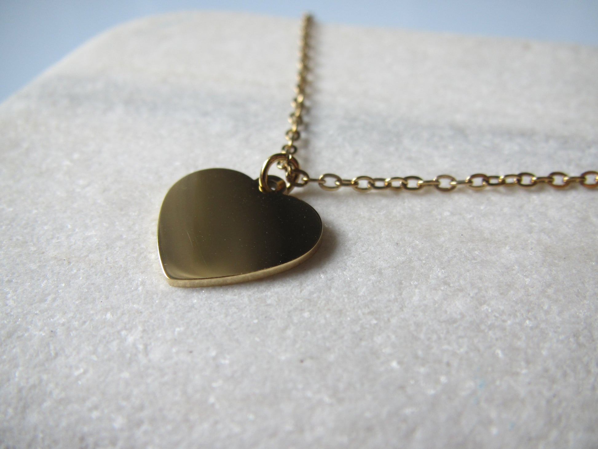 Colgante en forma de corazón con grabado de acero dorado